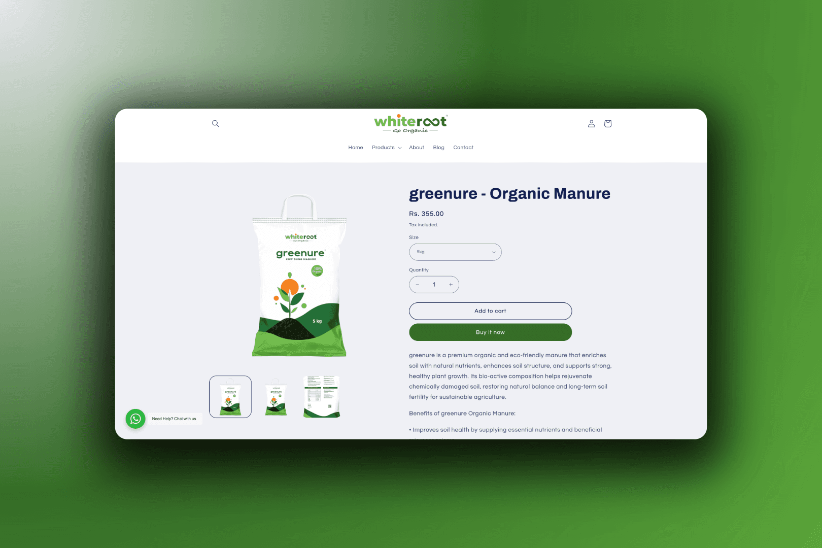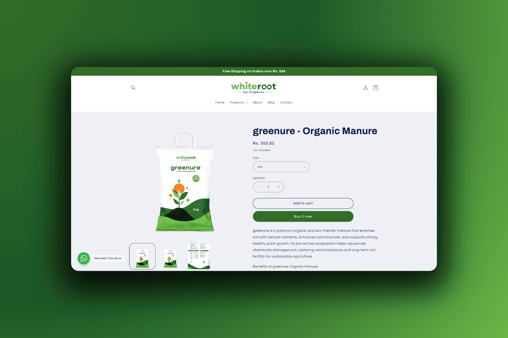 The organic home gardening space in India is growing fast, but most brands in it look the same: earthy photography, generic green packaging, credibility claims in small print. White Root Organics had genuinely good products under the Greenure and Big Leaf lines, cow dung manure and a flower booster made with real organic commitment. The challenge was packaging and a web presence that cut through a crowded, visually uninspiring category and gave the brand a personality worth remembering.